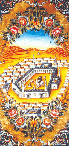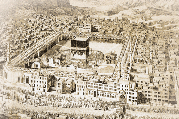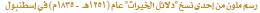 ومن الرسوم الملونة جمالياً صورة للمسجد الحرام والبيوت المحيطة به، شبه مجسمة زينت أطرافه بزخرفة رائعة وهي إحدى الرسوم المسجلة على غلاف كتاب "دلائل الخيرات" عام 1251هـ (1835م) الموجود في مكتبة جامعة إسطنبول، وبتأمل هذه الجمل الجمالية نجد أن الرســــام استطاع إضافة الوقار والحب والاحترام لهذا المكان، وذلك بوضع إطار من الزهور التي تحيط ببيت الــــله الحرام، كما لم تفتــه زخـرفة أركان الكتاب بالزخارف النباتية المتشابكة.