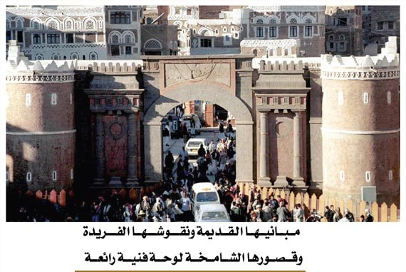 منال عثمان ســـلمان * يجد الزائر لمدينة صنعاء، حاضرة اليمن الخضراء وعروس الجزيرة العربية، وعاصمة اليمن السعيد، توليفة كبيرة من اللوحات الفنية الرائعة والمتنوعة، تتمثل في أسوار المدينة القديمة، وبواباتها العملاقة، وقصورها الشامخة، وبيوتها بالغة القدم بنقوشها الفريدة، ومشربياتها وشبابيكها المميزة، ومساجدها ووكالاتها وقمرياتها، وأسواقها الشعبية التراثية المنتشرة في عدة أحياء ومناطق، والتي تُشكِّل في مجملها أكبر متحف تاريخي طبيعي مفتوح في العالم، كما تميزت مبانيها بطابع معماري يرجع في أصوله إلى عصور ما قبل الإسلام، وبعد الإسلام اصطبغت بنمط العمارة العربية الإسلامية. لهذا لم يكن غريباً أن يتم اختيار "صنعاء القديمة" ضمن أهم خمسة وعشرين معلماً أثرياً وسياحياً في العالم.