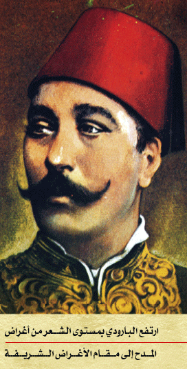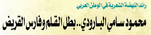 شاخ الشعر العربي في أخريات عصر المماليك وبلغ أرذل العمر، فلما لاح فجر النهضة الشاملة في مصر بدأ الشعر يستعيد همته ويشتد ساعده، بعد أن ظل فترة يراوح بين النهوض والانتكاس ولكن النهضة مضت في طريقها، واللغة دبت فيها الحياة والإحساس بالجمال بدأ ينمو شيئاً فشيئاً، فكانت المطابع تدفع بالكتب الأدبية القديمة والمدارس تبدد سدف الجهل والظلام، والصحافة تفتح آفاقاً جديدة لوسائل التعبير وقادة الفكر أمثال جمال الدين الأفغاني ومحمد عبده يزيلان الغشاوة عن الأبصار ويفتحان الطريق واسعاً أمام الناس لبيان سعة الإسلام ورحابته وعظمته. وفي هذه الفترة قيض اللّه للشعر من ينهض به من كبوته ويفك أسره ويقيل عثاره. فكان ذلك على يد بطل القلم وفارس القريض أستاذ الشعراء وأميرهم محمود سامي البارودي. |