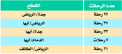 الرحلات المجدولة الداخلية حسب الجدول التالي الذي يوضح عدد