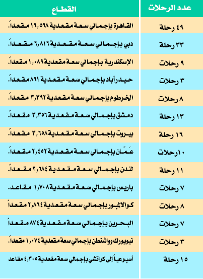 الرحلات المجدولة الدولية طبقاً للجدول التالي الذي يوضح عدد