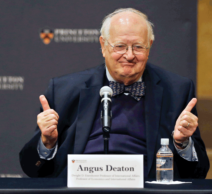 بعد ساعات من تلقي نبأ الفوز، ناقش ديتون مع صحيفة «فايننشال تايمز» آراءه المثيرة للجدل في بعض الأحيان، حول ثلاثة من أهم الموضوعات التي تناولها بالبحث والدراسة.