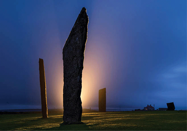 Stenness, Orkney: Five thousand years ago the ancient inhabitants of Orkney — a fertile, green archipelago off the northern tip of modern-day Scotland — were building a civilization. One of their landmarks is the Stones of Stenness, which may be Britain’s most ancient stone circle. |